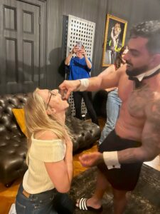 Toned, tanned, fit, and ready! They will host endless party games, serve drinks & food, mingle with guests, and pose for photos. Wearing nothing ‘butt’ a bottom revealing apron, collar, cuffs, and a bowtie!